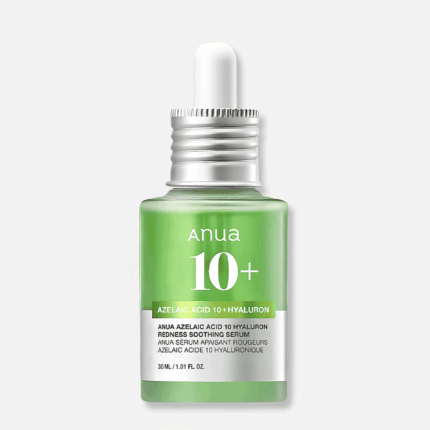 El Azelaic Acid 10 Hyaluron Redness Soothing Serum de Anua es un suero calmante y corrector ideal para pieles sensibles, con enrojecimiento o tendencia al acné. Ayuda a reducir rojeces, controlar la producción de sebo y mejorar las imperfecciones. Mejora el tono desigual y aporta un aspecto más uniforme y saludable. Ideal para uso diario, incluso en piel sensible o con tendencia acneica.